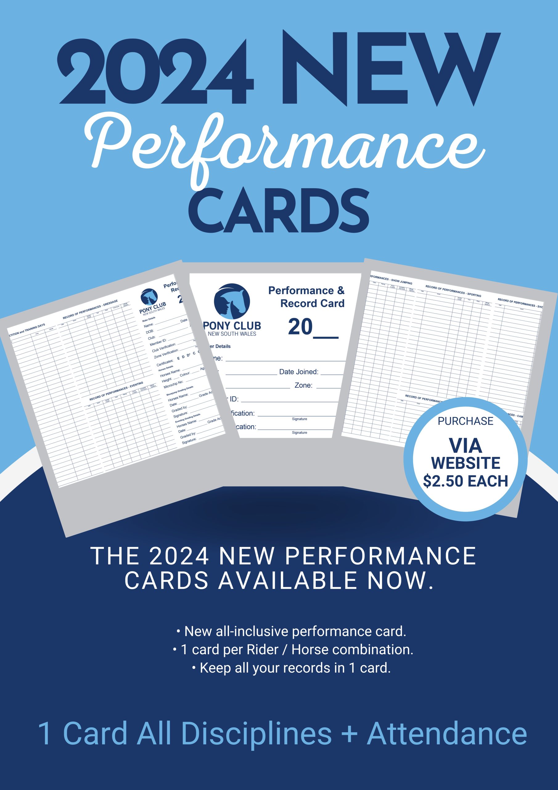 Our New Cards are an all-inclusive card that has rally day attendance, dressage, showjumping, ODE, sporting, campdrafting, showriding & tetrathlon all on the one card.